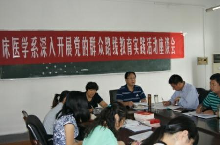 9月6日下午14:30,按照党的群众路线教育实践活动要求,根据《徐州医学院临床医学系党的群众路线教育实践活动实施方案》的总体安排,临床医学系党委 在系会议室举行“深入开展党的群众路线教育实践活动”座谈会,活动由系党委彭波书记主持,系领导班子和全系老师参加了本次活动。