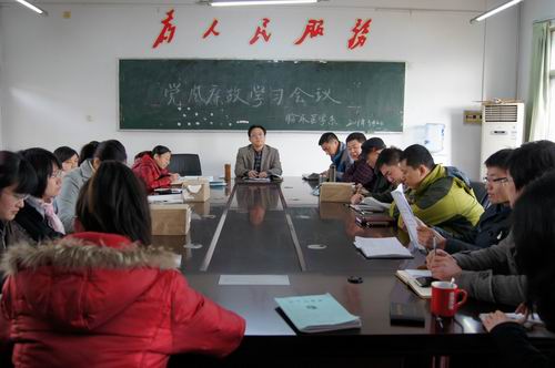 彭书记首先带领全系老师认真学习了院党委陈贵州书记关于《解放思想 深化改革 真抓实干全面加快教学研究型医科大学建设步伐》的工作报告,接下来传达了中纪委十八届二次全会、省纪委三次全会精神和全省教育系统2013年党风廉政建设会议精神,并按照学校2013年工作的指导思想和主要任务及党风廉政建设任务的总体部署对我系各项工作做了细致周密的安排。最后彭书记要求全系师生员工要进一步增强责任感、使命感和紧迫感,紧紧围绕学校事业发展的各项任务,以更加奋发有为的精神状态、求真务实的工作作风、锲而不舍的坚强意志,推动学校事业又好又快发展。