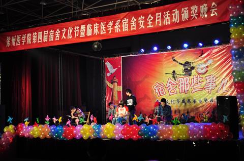12月13日晚,由临床医学系主办的“徐州医学院第四届宿舍文化节暨临床医学系宿舍安全月活动颁奖晚会”在大学生俱乐部顺利举行。学工处及临床医学系有关领导、老师出席晚会。