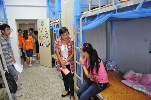 8月31日是我校2012级新生报到的日子。在系领导的精心组织和周密部署下,我系的迎新工作顺利开展。为了及时了解新生入学后的生活状况,当天下午我系主任解震环、副书记刘锦、学管办主任汪宏伟、教学办主任宋久华、团委王士雷老师、12级辅导员阚仁建及12级各班兼职班主任深入我系近百个学生宿舍看望了五百余名的2012级新生。