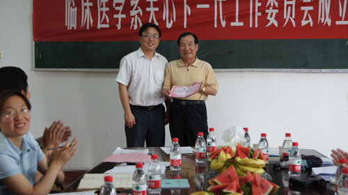 临床医学系党委书记彭波代表系党委宣读了《关于成立临床医学系关心下一代工作委员会的决定》,明确了关工委的人员构成、工作目标和工作方针。王勇教授对系关工委的成立表示热烈的祝贺,并提出了殷切的期望。系领导为关工委成员颁发了聘书。系党委副书记刘锦就系关工委2012年工作计划进行了部署和解读,希望新成立的关工委能够充分发挥老同志的指导作用,协调各方面力量,努力适应和探索工作机制,切实把关心下一代的工作做好。