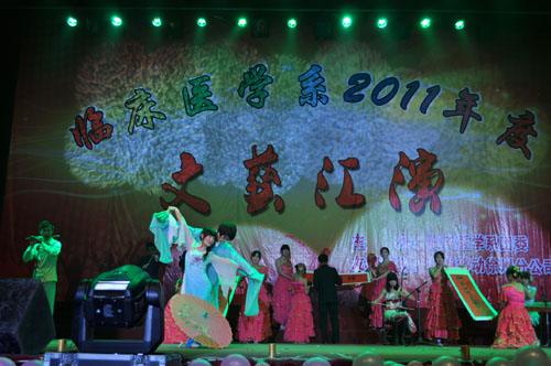 临床医学系2011年度学生工作总结暨文艺汇演充分展示了临床医学系全体师生员工团结协作、奋发向上的精神风貌,也丰富了同学们的校园生活。在新的一年里临床医学系全系师生必将以崭新的面貌、振奋的精神,努力工作、不断进取,为临床的明天努力奋斗,为徐医的建设添砖加瓦!