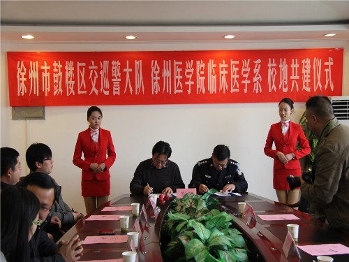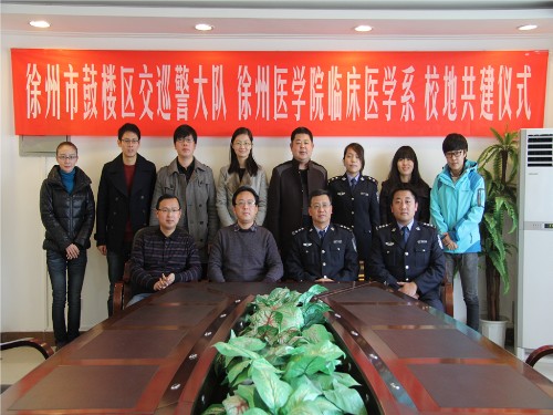 2014年1月15日下午,在我校326会议室成功举办徐州医学院临床医学系团委与徐州市鼓楼区交巡警大队校地共建签约活动,出席本次签约活动的有徐州市鼓楼区交巡警大队指导员李欣、鼓楼大队副大队长杨帆、鼓楼大队二中队队长徐轲,共青团徐州医学院委员会书记李海洋、徐州医学院临床医学系党委书记彭波、系学生管理办公室主任汪宏伟、系团委书记张畅、系团委副书记解加伟以及各级团学组织代表。此次活动也受到了徐州市广播电台和徐州市都市晨报的报道。