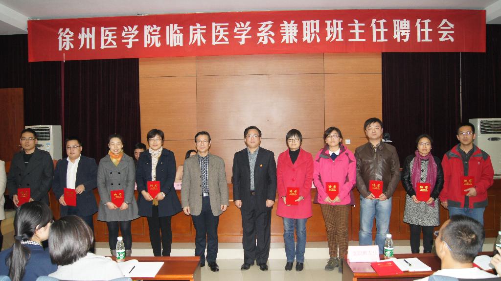 会上侯筱宇院长、杜玲院长分别介绍了基础医学院、公共教育学院兼职班主任报名选拔情况并宣布了兼职班主任名单;彭波书记对学校领导和基础医学院、公共教育学院领导老师对临床医学系兼职班主任聘任工作的大力支持表示感谢,介绍了临床医学系兼职班主任“八个一”工作职责,并宣布兼职班主任与班级对接情况;曲德伟老师、王健老师分别代表基础医学院、公共教育学院兼职班主任发言;接着赵世鸿副书记、在临床医学系彭波书记的陪同下为全体兼职班主任颁发聘书并合影;最后赵世鸿副书记做重要讲话,他首先对临床医学系兼职班主任工作充分肯定,并表示在工作推进过程中将给与更多关心支持,他要求临床医学系积极探索兼职班主任工作的新形式、新思路,在基础医学院、公共教育学院的支持下,争取把兼职班主任相关工作在全校范围内全面铺开;同时赵书记对兼职班主任的具体工作提出三点希望和要求,一是要求广大参聘专业教师充分认识兼职班主任肩负的职责任务,进一步加强师德建设,提高业务水平,以高尚师德、人格魅力、学识风范教育感染学生,做学生健康成长的指导者和引路人;二是要处理好与专职辅导员的关系,专职辅导员主要是以年级为管理和教育单位,从宏观的角度开展工作,兼职班主任主要以班级、个人为单位,从中观角度开展工作,工作中对专职辅导员应多理解,多支持,多配合;三是要处理好与学生的关系,当代大学生思维方式及行为特征发生了很大变化,对现有的教育教学方式也提出了新的挑战,兼职班主任要真心关爱学生,深入了解学生,才能有的放矢地开展工作。会后,兼职班主任与对接班级的年级辅导员、班长交流了班级综合情况,领取了工作笔记。