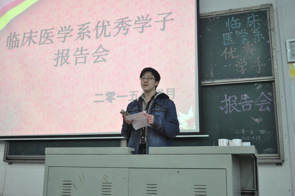4月17日晚,由临床医学系主办的优秀学子报告会在主二教室隆重举行, 2010级优秀学子吴翔同学和张定国同学受邀作为本次活动的主讲人。