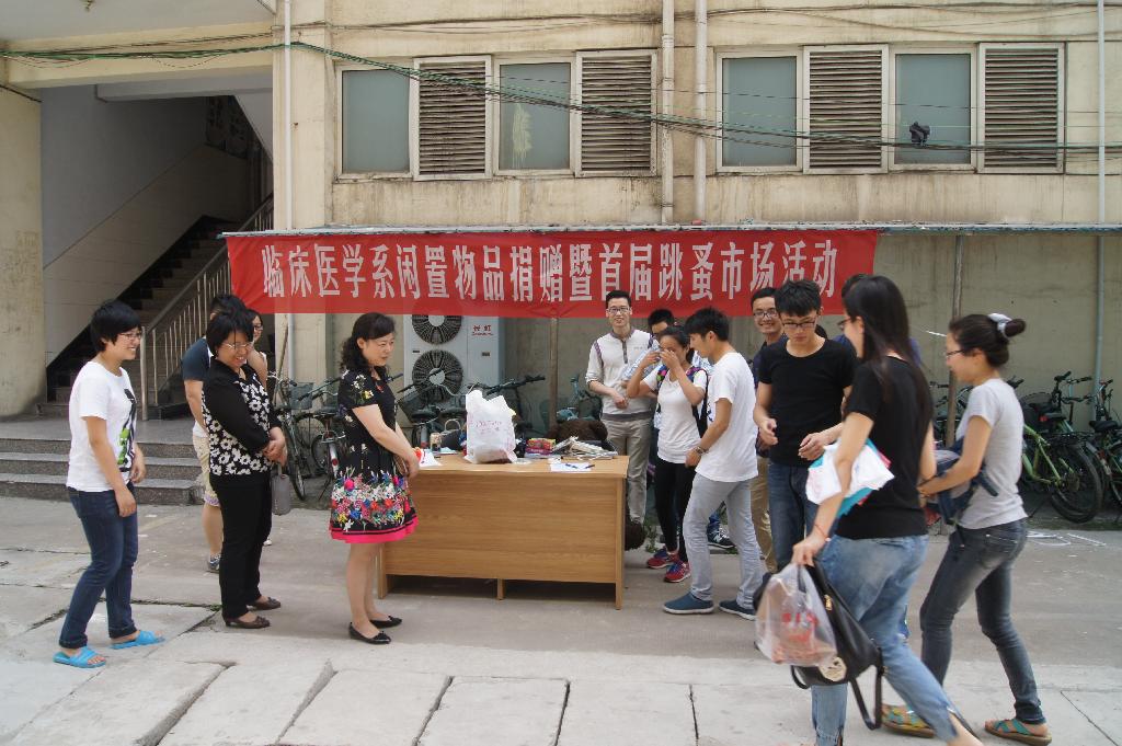 临床医学系团委于6月1~3日中午在主校和西校区举办了向贫困地区儿童献爱心捐赠义卖活动。活动主要募捐对象是本校即将见习、实习和毕业的临床医学系在校生,募捐物品为干净且闲置不用的衣物和书包等物品。