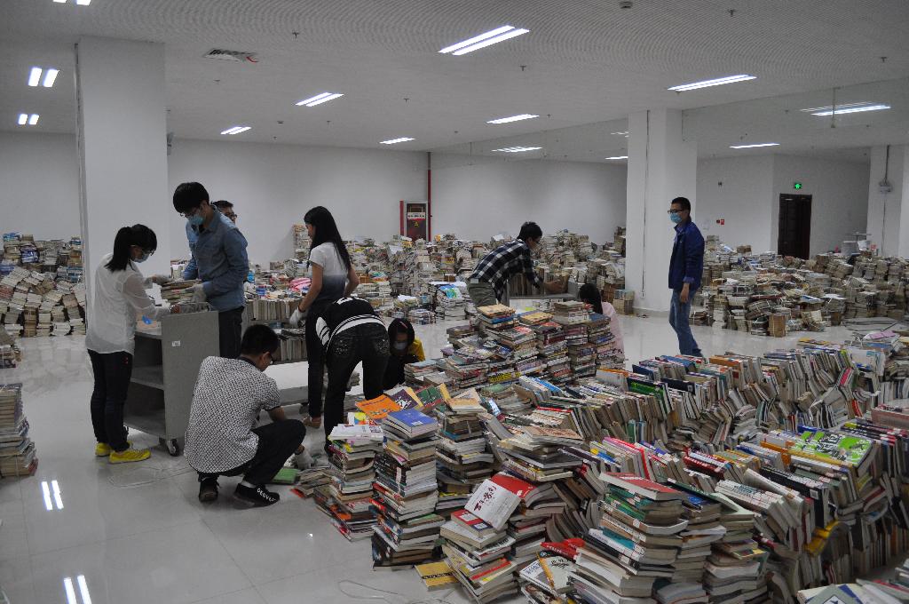 5月26日下午, 由临床医学系2013级、2014级卓越医师班举办的“我为新馆出份力”志愿者系列活动在徐州医学院新图书馆内拉开序幕。同学们利用课余时间,在图书馆郭雷老师、顾倩老师的指导下,对馆内新书进行拆封、归类、搬运、贴磁条、分类后上架等操作。 同学们在宽敞明亮的借阅大厅里,一边劳动一边听老师介绍将来同学们在新图书馆里可享受的各种服务,内心充满期待,每每看到自己心仪的图书,就开心的告诉同学们书名,希望自己能早一日借阅到此本图书。此次活动持续约2小时,看着一本本书通过自己的双手找到了新家,同学们全然不顾满身大汗,内心充满了劳动后的喜悦和满足,并相约2日后再来新馆进行志愿者劳动,短短的两周,同学们已经进行了5次劳动,总数达到70余人次。在此,卓越班全体同学也向全校同学发出倡议:“我帮图书安新家”,大家都抽出一点课余时间,为了新馆的早日开放,去新馆出份力!