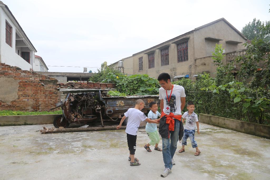 上午,第一组同学乘车到达父母双亡并与奶奶居住的王盛小朋友家。在对其家庭情况作了一些简单的了解以及对王奶奶和王盛的慰问后,志愿者们便带着王盛去镇子上给家里购置一些生活必需品,回来的时候小盛主动帮忙提东西;小孩子也很大方,主动把我们在超市给他买的东西分给邻居家的孩子。但是,自始至终,他都讲话很少,脸上也没有什么表情,有一种自带的忧伤情绪。王盛的哥哥在外打工,其与80岁半聋奶奶共同生活,家庭的变故让他小小的心灵留下了严重的创伤,为避免其走上歧途,志愿者们向他灌输了要好好学习的思想并给他讲了暑假作业,让他感受到帮助的温暖。同时,陈主任承诺,以后每年会给王盛1500元的生活学习补贴。最后,我们与王盛的表姐交换了联系方式,以便以后活动的更进。