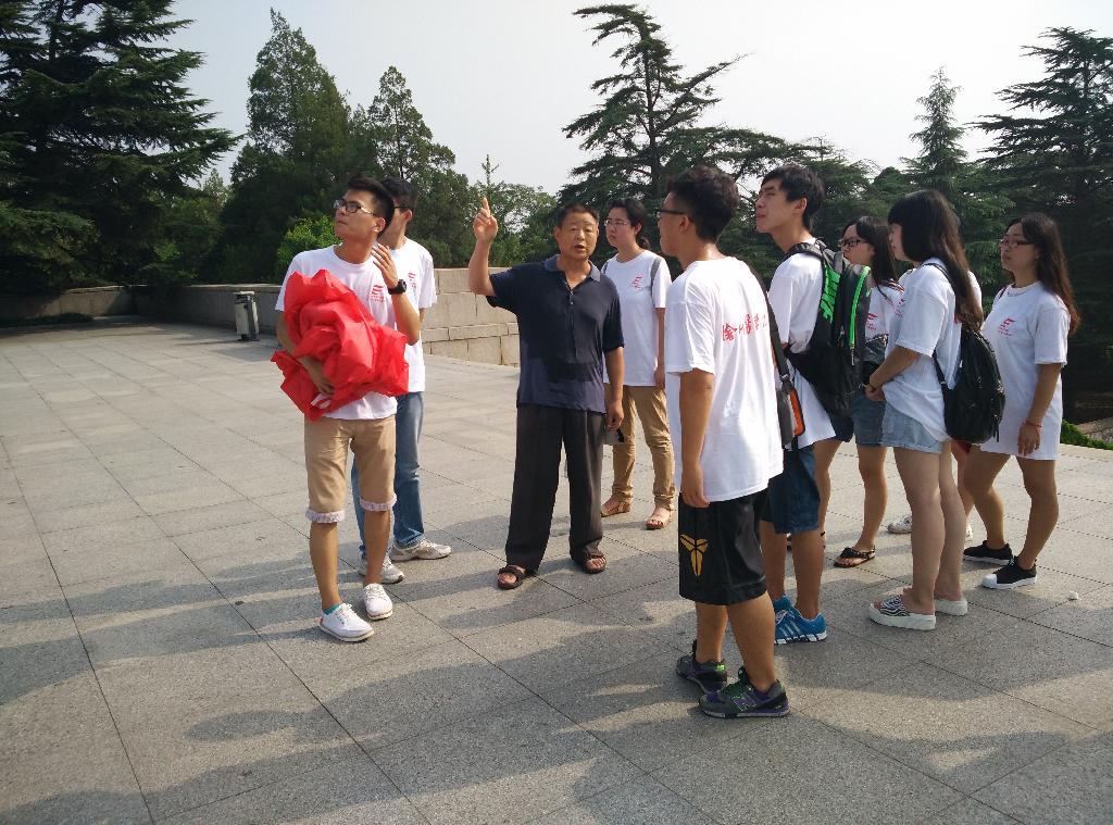 首先,志愿者们在纪念塔前庄严宣誓,缅怀先烈。随后,前来参观纪念园林的一位老前辈为志愿者讲解淮海战役以及先烈的光荣事迹。同时,志愿者们怀着激动的心情跟着老前辈学习红歌。最后,志愿者一同来到淮海战役纪念馆,参观馆里陈列的文物,照片,制作品等,真切地感受了淮海战役胜利的进程。