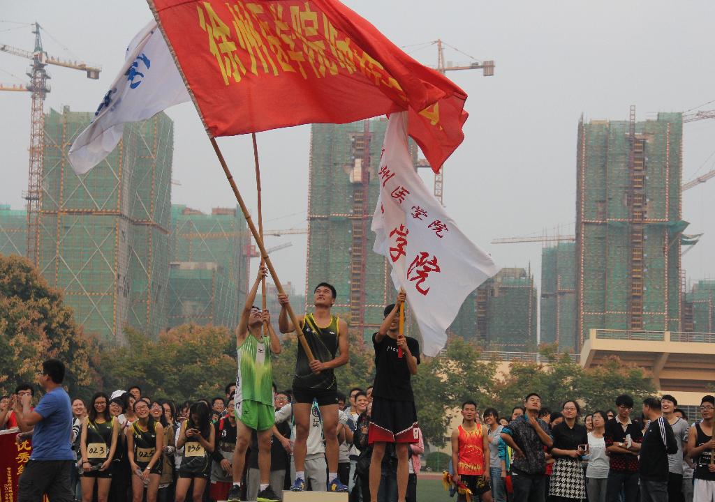 伴着激昂的进行曲,国旗队、校旗队、彩球队、裁判员方队及各参赛队方阵依次入场。各参赛队方阵在主席台前分别进行精彩的展示。临床医学系方阵在一片欢呼声中率先向主席台阔步而来,方阵以“青春梦”为主题,促青春飞扬,让梦想起航,展现了当代大学生的青春活力和临床学子的卓越风采。运动会赛场上,运动员们超越自我,勇往直前,凝聚团结,奋力拼搏,用汗水浇灌硕果,用激情点燃梦想。场下啦啦队的呐喊助威声响彻云霄。经过激烈角逐,临床医学系以绝对的优势获得团体总分、男团总分、女团总分、混合团体拔河比赛四项第一的优异成绩,实现了大满贯。同时,临床医学系还获得“优秀组织奖”的荣誉称号。
