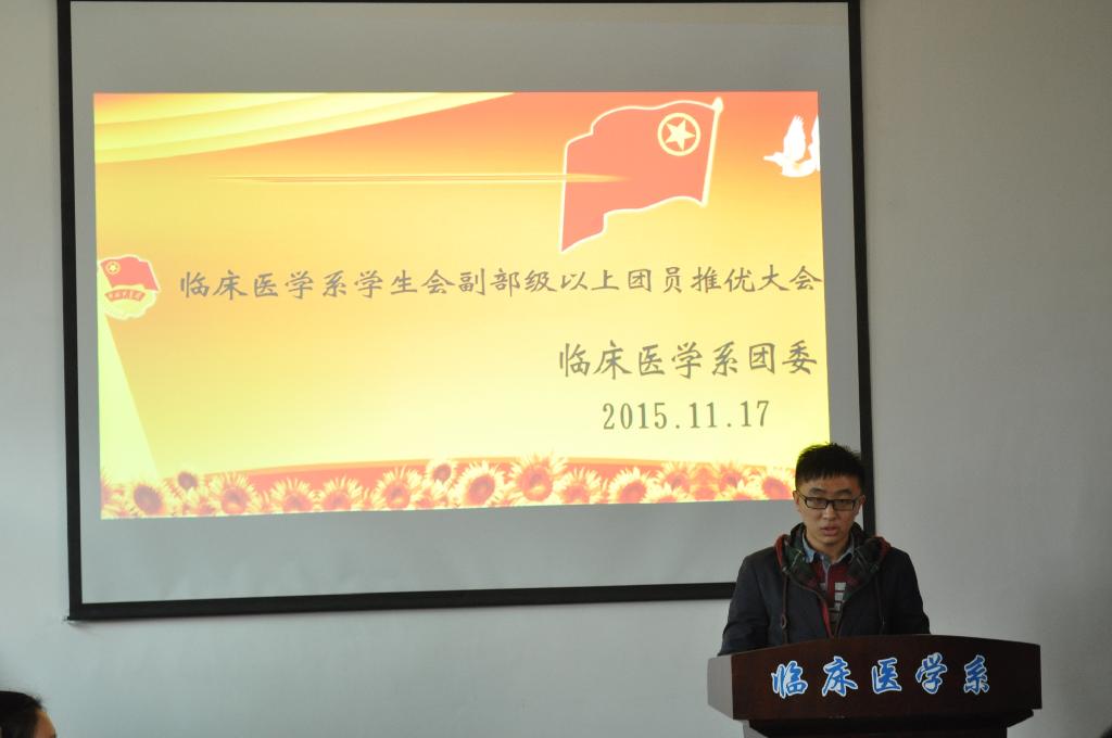11月17日中午,临床医学系学生会副部级以上团员推优大会在系楼307会议室顺利召开。临床医学系党委书记陈玮、团委书记张畅、校级学生组织主要学生干部以及系学生会副部级以上全体成员参加了本次大会。