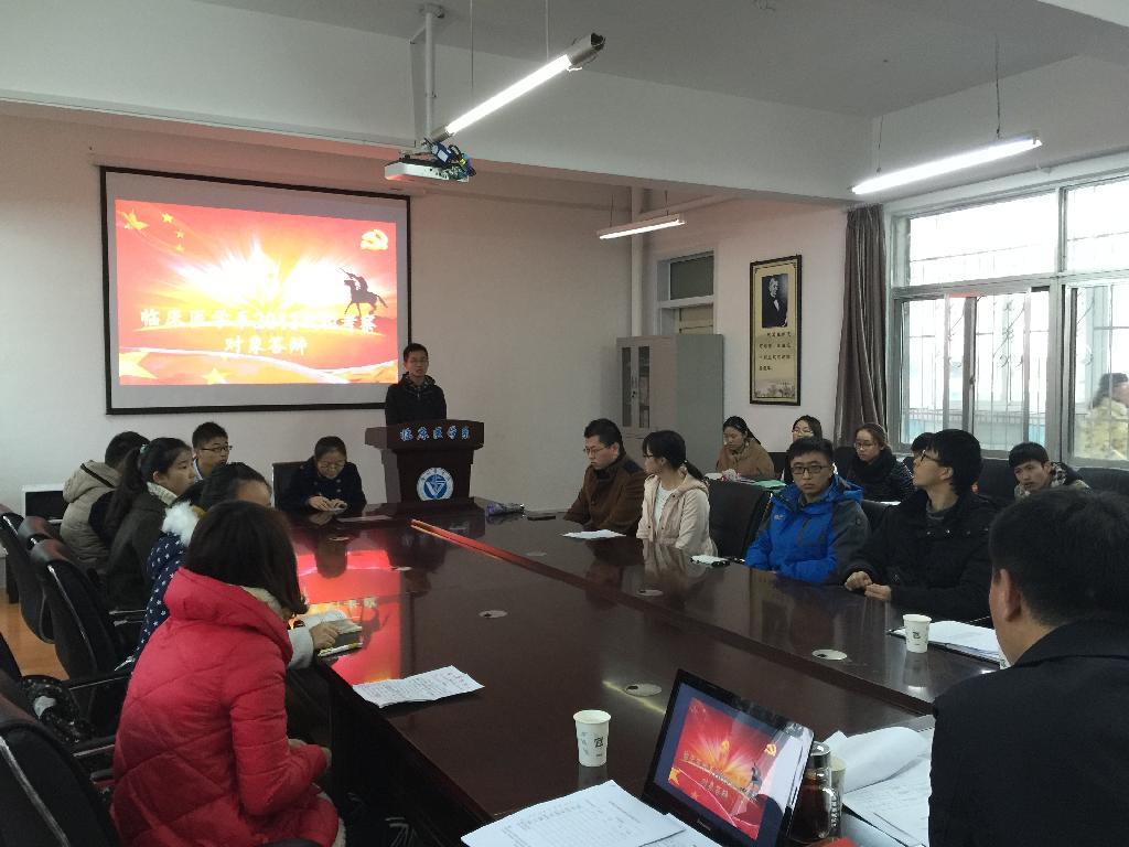 为切实把牢发展党员的“入口关”,进一步扩大民主、完善程序,深入落实学校党委党建创新工作相关要求,我系2013级学生党支部特于11月23日中午12点00分在系楼307会议室召开“拟考察对象答辩大会”。