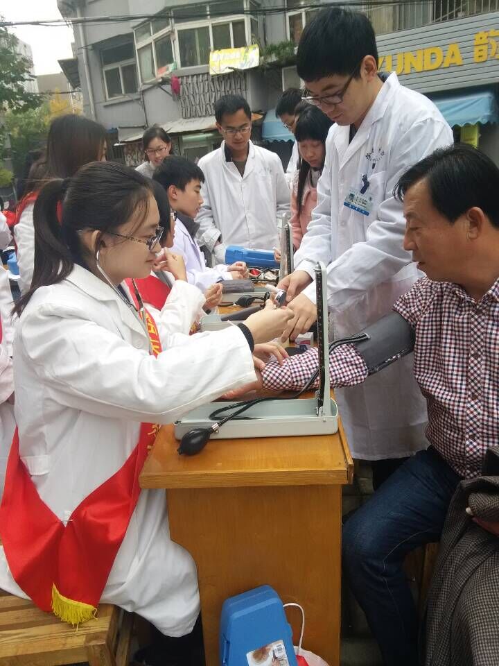 为增加人们的健康知识,提高人们对慢性疾病的认知和关注,普及”早预防,早发现,早治愈”的意识,临床医学系2012级西校9个班的同学走进用事业小区、都市家园、永康社区等社区开展社区义诊活动。