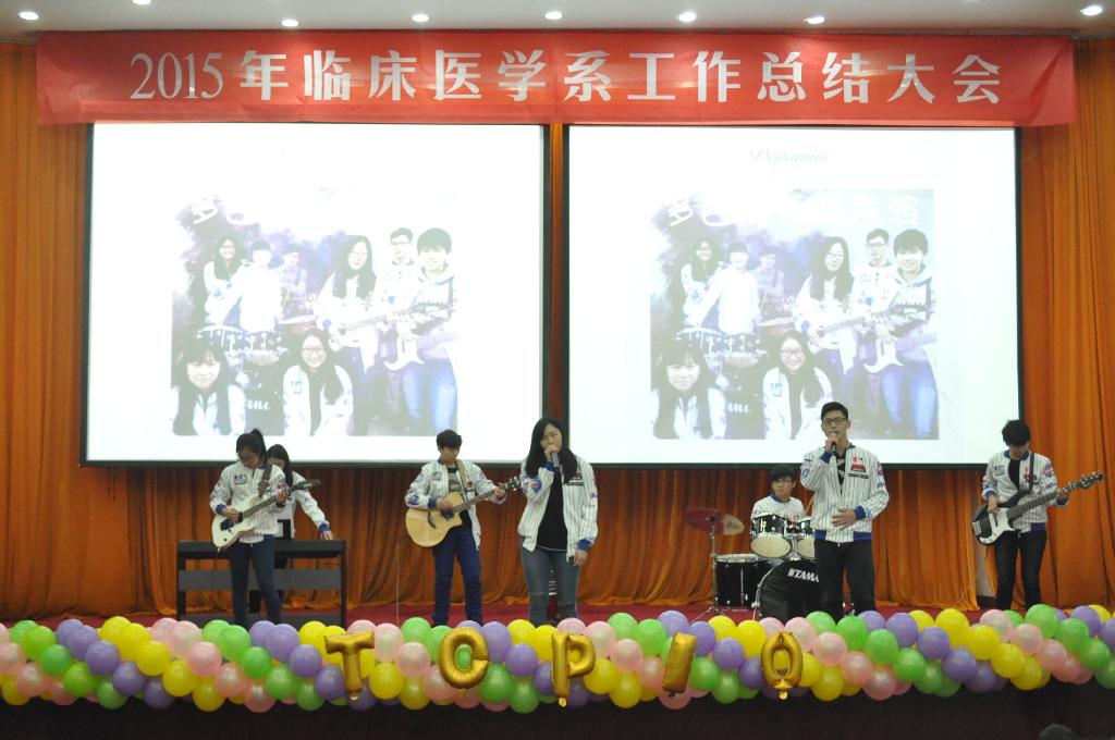 在临床医学系多巴胺乐队的精彩表演下,此次大会正式拉开序幕。本次大会由唐俊兵副书记主持。首先,陈玮书记发表讲话,她总结了过去一年中我系取得的优秀成绩,并提出了下一年度的工作展望。接着进行了激动人心的颁奖环节,本次颁奖共分为6个批次,包括第52届运动会运动员优秀工作人员、暑期社会实践系级层面优秀团队、“微党课”评比获奖同学、临床专业认证先进个人、临床医学系2015年魅力学子和优秀兼职班主任、优秀工作总结获得者,各批次获奖代表们依次上台领奖并合影留念。随后,优秀兼职班主任代表付琳琳老师发言,总结班主任一年的工作并对下一学年工作做出了安排。最后学工处胡斌处长做总结发言,他对我系一年来的工作成果给予了高度评价并提出了下一阶段的工作期望。至此,本次大会圆满结束。