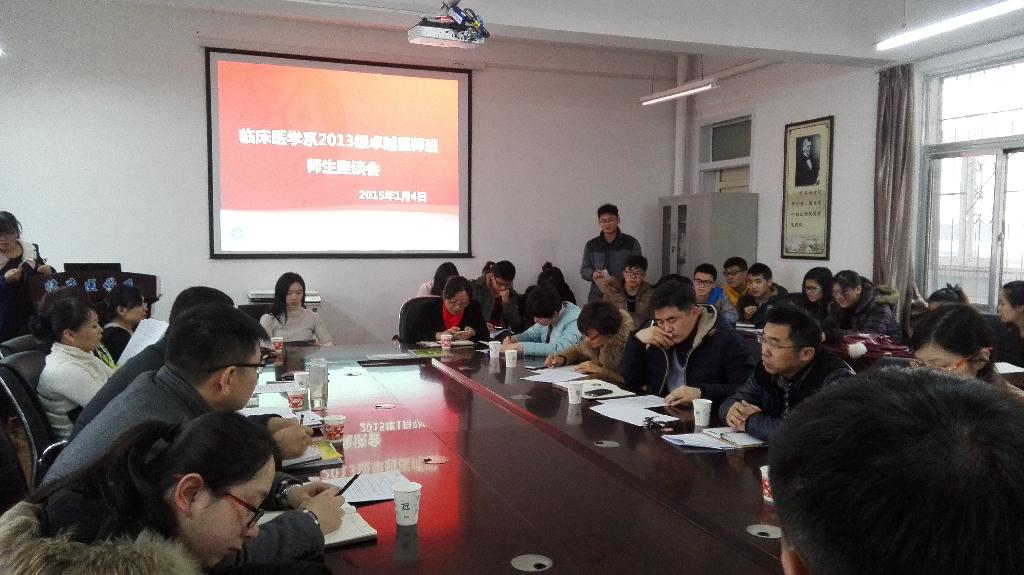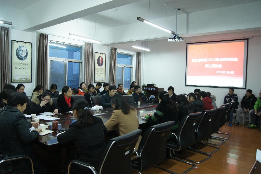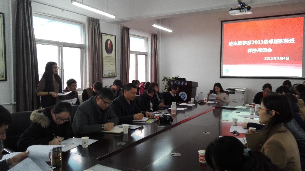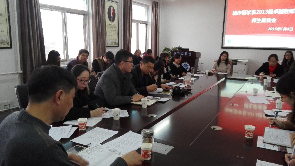 为了进一步了解卓越医师班学生的学习情况,加强师生的交流,总结前一阶段的教学工作,我系于2016年1月4日在系楼307会议室召开了2013级、2014级卓越医师班师生座谈会。临床医学系主任谢震环、系党委书记陈玮、党委副书记唐俊兵,系党政办公室、教学管理办公室、学生管理办公室、团委老师以及各相关领导老师和2013级、2014级卓越医师班全体同学参加了座谈会。