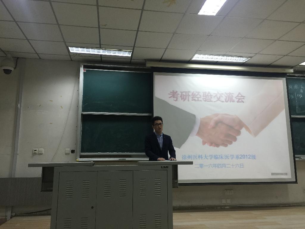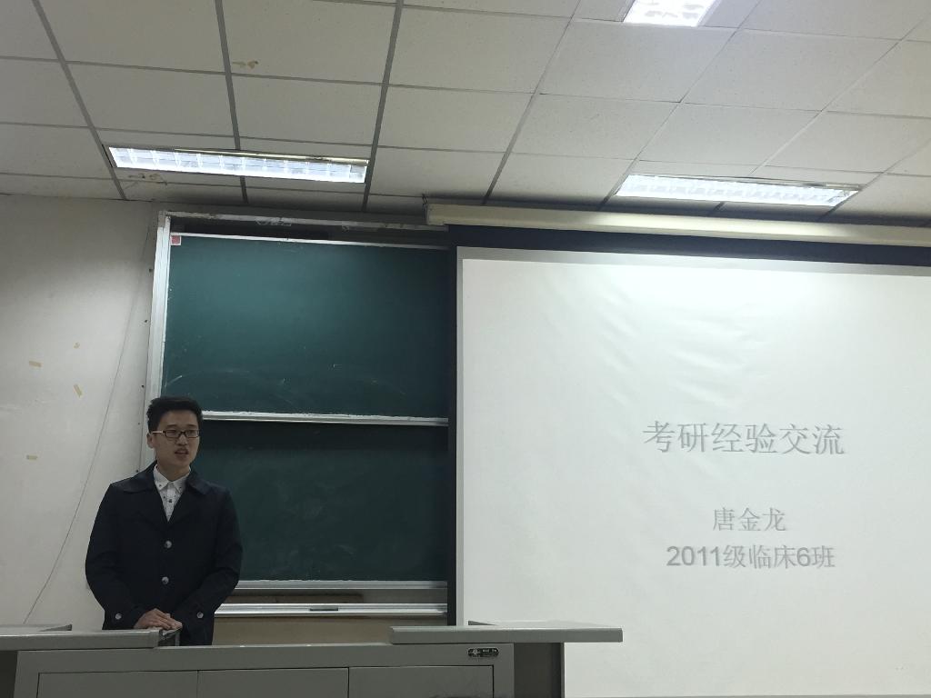 刚着手准备考研复习的同学们一时间找不到适合自己学习的节奏跟方式,常常感到迷茫,但实习、考研、就业的压力容不得作为医学生的我们有半点的松懈。作为一个踌躇满志的考研人,一套高效且适合自己的学习方法就显得尤为重要了。为此,临床医学系2012级的同学们在辅导员老师的悉心支持和帮助下,于4月26日约起了2011级的学霸学长们在徐州医科大学西校区九大召开了一场盛大的考研经验交流会。