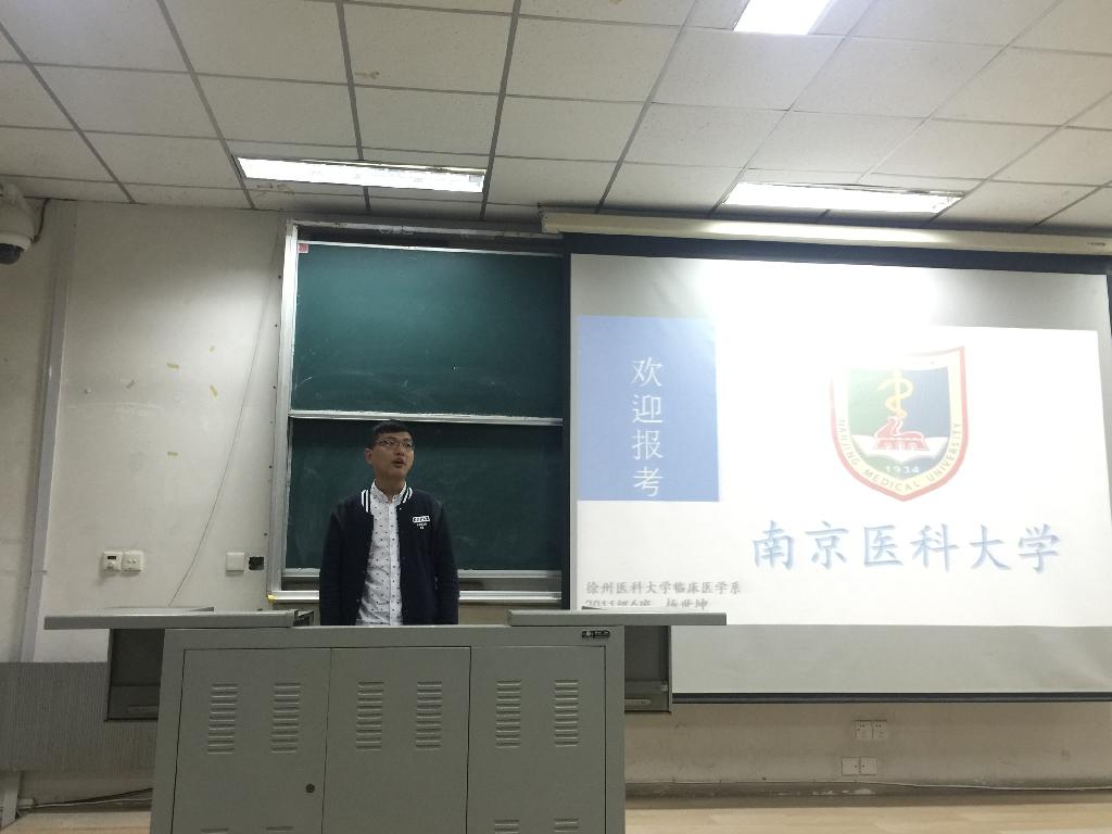 本次考研经验交流会邀请的11级学长们分别是:柏佩原,以399分徐州医科大学2016考研的第一名录取于上海交大心内科学术型;张尚卿,以391分录取于北大医学部消化内科专业型;唐金龙,以378分录取于徐医大骨科专业型,他还曾是临床技能大赛参赛队员;杨世坤,以376分录取于南医大第一临床学院普外科专业型。