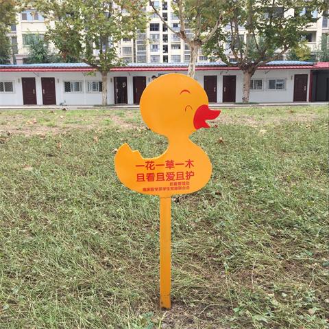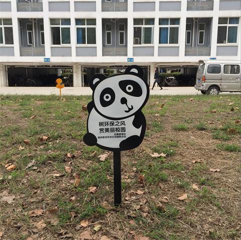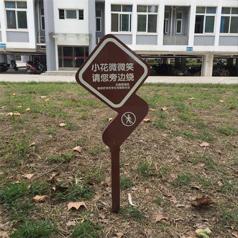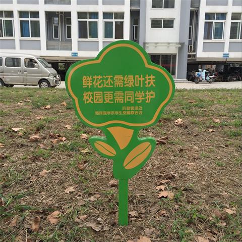 通过树立环保标语牌,不仅警示了同学们不要随意践踏草坪、采摘花朵,同时也给秋冬的校园增添了几分趣味,更能使同学们关注绿化,提高环保意识,维护美丽校园。