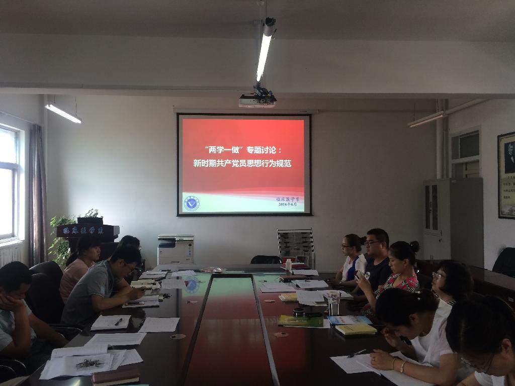2016年6月24日,临床医学系党委在系会议室开展“两学一做”——“新时期共产党员思想行为规范”专题学习讨论会。会议由党委书记陈玮主持。