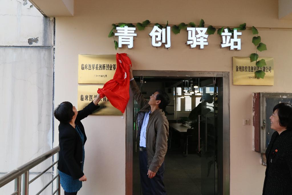 10月18日下午,临床医学系大学生创新创业基地在博远四楼(1号和2号宿舍楼之间)正式揭牌成立。郑葵阳校长、机关党委汪宝银书记、谢震环主任,陈玮书记,唐俊兵副书记和系学生管理办公室姜嘉主任、陈凤鸿副主任,以及创新创业项目负责人参加了揭牌仪式。