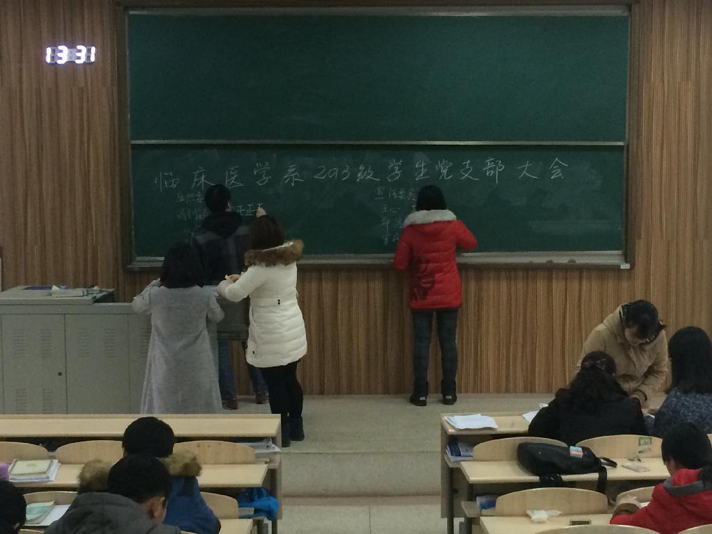 12月13日,临床医学系2013级学生党总支换届选举大会在西校区第一大教室隆重召开。临床医学系党委委员姜嘉主任、2013级学生党支部书记张敏和盛苏皖老师出席大会,支部全体学生党员参会,会议由支部书记张敏老师主持。