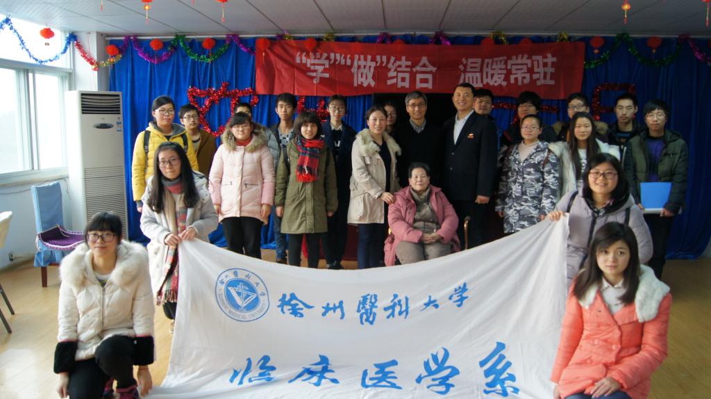 2016年12月31日下午,徐州医科大学临床医学系学生管理办公室副主任陈凤鸿和兼职班主任樊红彬主任医师,兼职班主任姚瑞芹教授带领2016级精神班全体学生到两山口智能一百老年公寓开展“温暖你我他,关爱送到家”活动。