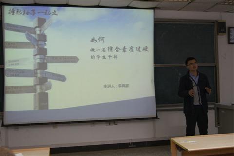 首先,陈老师就本次交流会发表讲话,强调了本次交流会的重要意义。随后,韦斌同学率先以班级学生干部的视角就如何做优秀的学生干部与同学们进行了深入的分享和探讨。李兵家同学以学生组织干部的视角提出“让优秀成为一种习惯”的主题,为同学们提出很多优化工作方法和工作思路建议。学长们幽默的谈吐、自信的发言,实用的工作技巧,给受培训的学生干部留下了深刻的印象。最后,受培训学生干部向韦斌和李兵家同学提出工作中遇到疑惑,学长们都一一进行了精彩的解答,赢得了在场学生干部的热烈掌声。