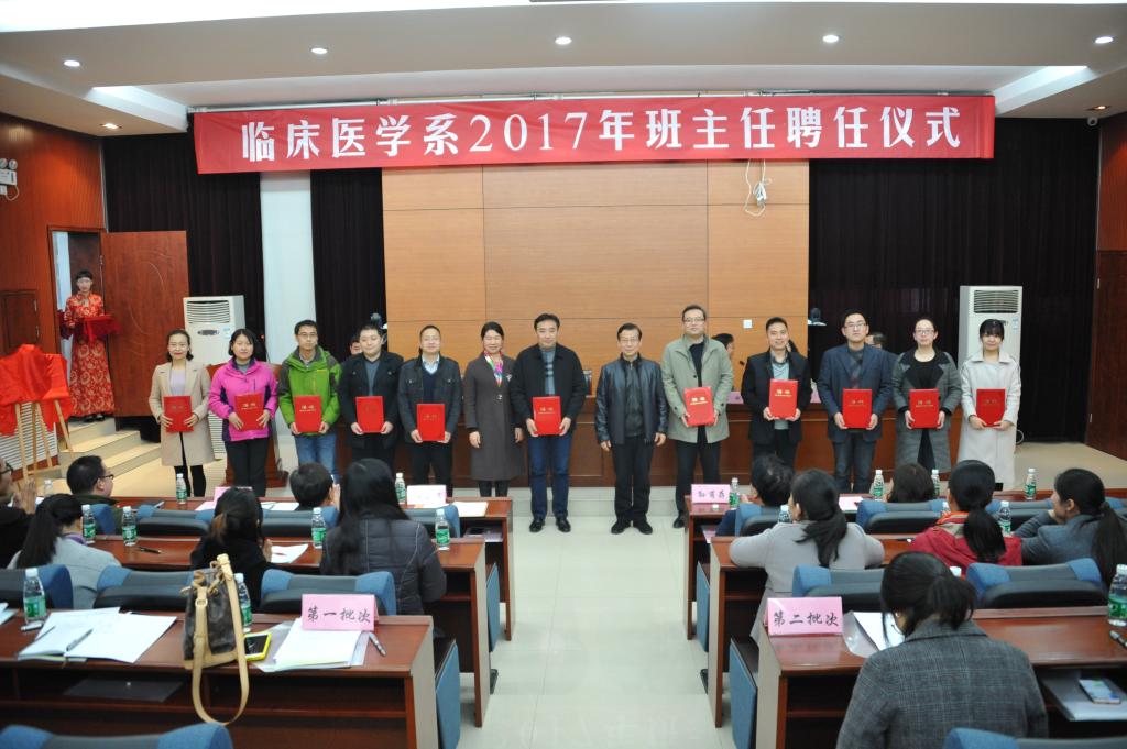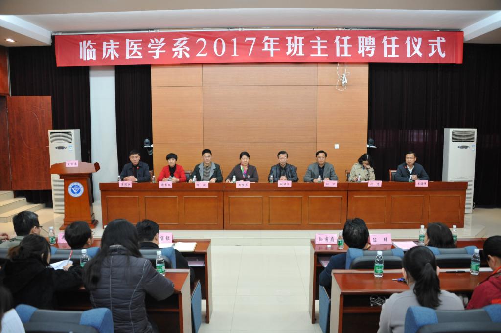 会上临床医学系李海洋书记介绍了2017年班主任聘任工作;临床医学系谢震环主任宣布了新聘班主任与班级对接情况;2016年优秀班主任代表唐晓栋博士介绍了工作经验;赵世鸿副书记和相关职能部门负责任人为新聘班主任颁发了聘书;新聘班主任代表刘志伟博士和2016级临床7班成文振同学分别做了表态发言;学生工作处胡斌处长从全校学生管理的角度解读了班主任工作;教师工作部杜刚部长对受聘教师提了工作要求。