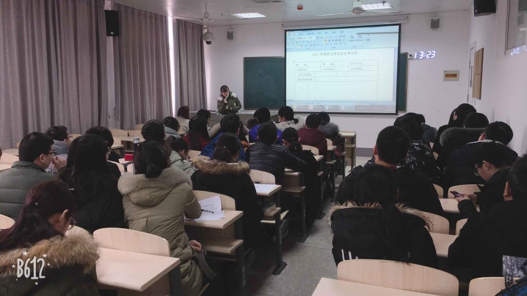 随后,崔雯老师带领全体党员们集体学习,在引导成员搞清楚弄明白“八个明确”、“十四个坚持”、党员义务、党的基层组织的基本任务等内容的基础上,结合2017年度党员日常表现和党支部标准化建设实际,认真开展了意见征集工作,并结合实际情况对每位党员和支部建设情况做出了评价。崔老师提出,要深入学习党的理论知识,要善于思考总结。她建议利用微信群、公众号等新媒体来调动党员学习的积极性。她还勉励同学们时刻牢记党员身份,努力学习和工作。
