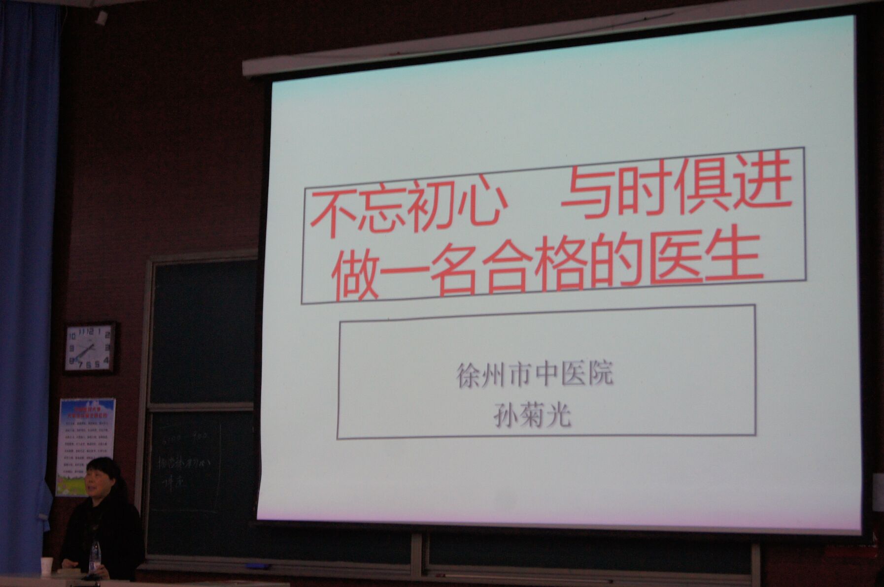 医廉文化传播者协会于2018年11月19日在主一教室举办了主题为“扬杏林初心,铸青春辉煌”的讲座,社团有幸请到徐州市唯一一个获得首届“江苏省十大医德标兵”——市中医院神经内科主任孙菊光教授来为我们分享她的医者初心。整个活动过程气氛良好,同学们备受鼓舞。