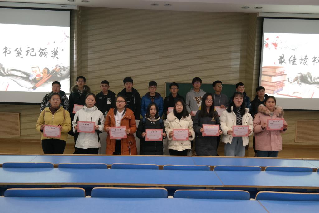 12月7日13:00由18级辅导员阮征、李化玲老师担任颁奖嘉宾,为获奖同学颁发奖状和相应奖品,活动至此圆满结束。在颁奖过程中,一个个意气风发的学子站上领奖台,脸上洋溢着自信的笑容,使同学们充分意识到本次活动的根本目的在于为同学们提供一个展示自我的平台,能够和更多的人分享自己的读书心得,用书墨促自信,用书墨促交流。