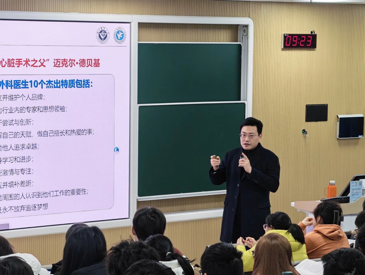 开学首日,吕校长亲临教学一线,为学生们讲授《外科学1》课程,学院领导班子成员随堂听课。吕校长将渊博的理论知识与丰富的临床经验相结合,讲解内容深入浅出、引人入胜,激发了学生探究医学奥秘的浓厚兴趣。
