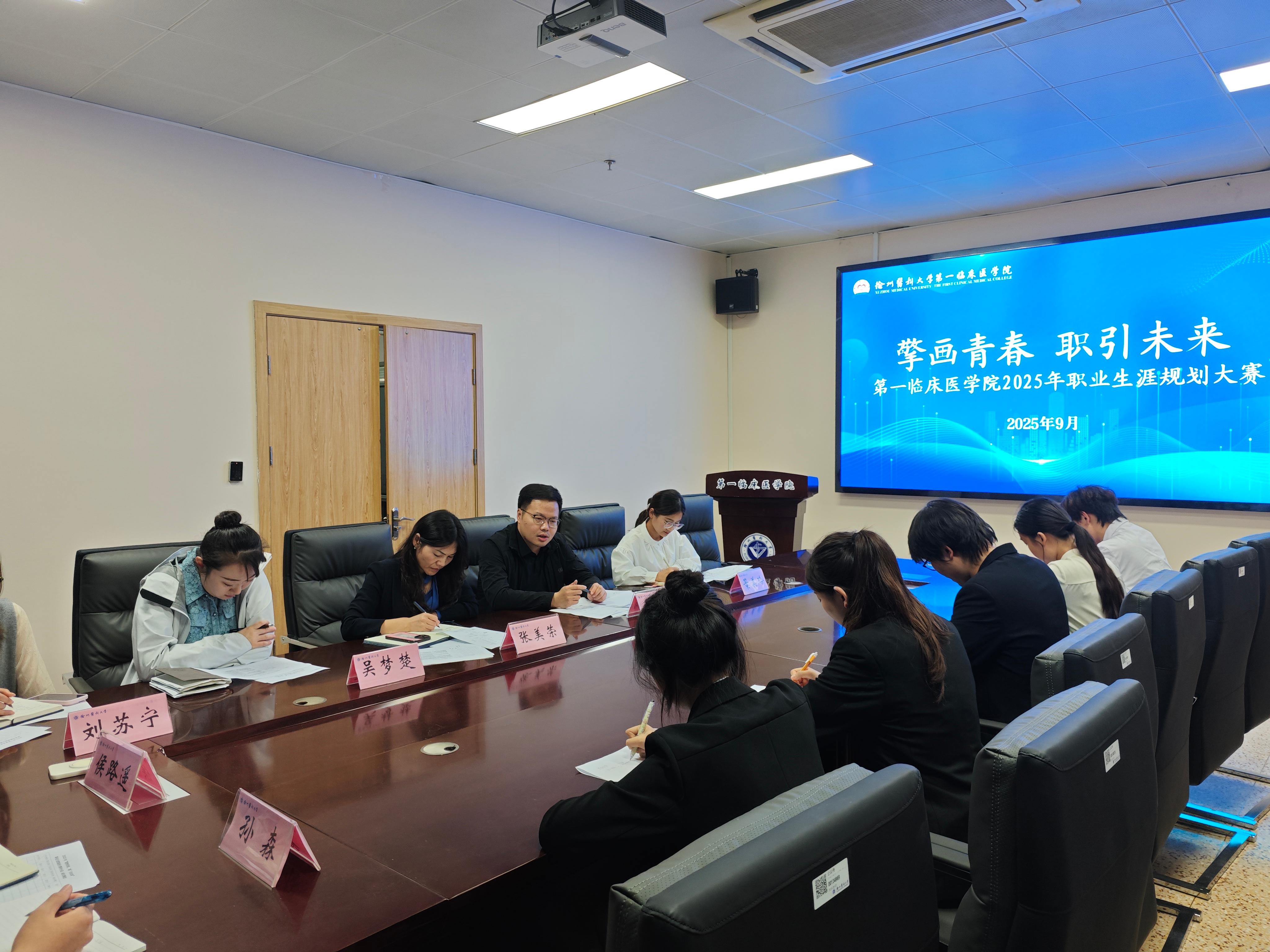 为帮助学生树立正确的职业观与就业观,科学规划个人发展路径,9月29日晚,第一临床医学院“擎画青春 职引未来”职业生涯规划大赛在学院会议室成功举办。学院党委副书记张美荣、全体指导教师出席活动。辅导员和学生代表现场观摩。