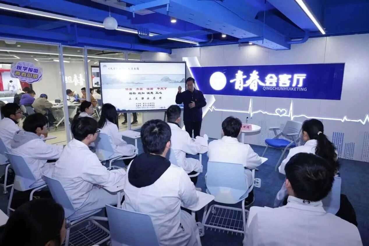 入团仪式结束后,学院在“医+”一站式学生社区青春会客厅开展“医学报国 青春挺膺”主题团课,特邀赵世鸿、郭开今教授主讲。赵世鸿教授以《大学》“三纲八目”为核心,解读“修身齐家治国平天下”内涵,寄语团员注重自我修养的提升,将个人成长融入国家发展。郭开今教授分享边疆援助、地震救灾及医疗器械创新研发经历,勉励青年勇于创新,为医学进步贡献青春力量。