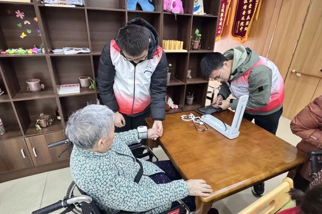 为更好地发挥专业优势,以实际行动践行医者仁心,学生志愿者在活动室开展血压测量与健康咨询服务。他们面带笑意问候老人,轻柔地操作仪器、专注地监测数值,测量后细致询问老人的饮食、作息与用药情况,用温润的语调送上健康叮嘱。这场暖心活动不仅为老人提供了便捷的健康服务,更拉近了彼此的距离,传递了对老年群体的深切关怀。