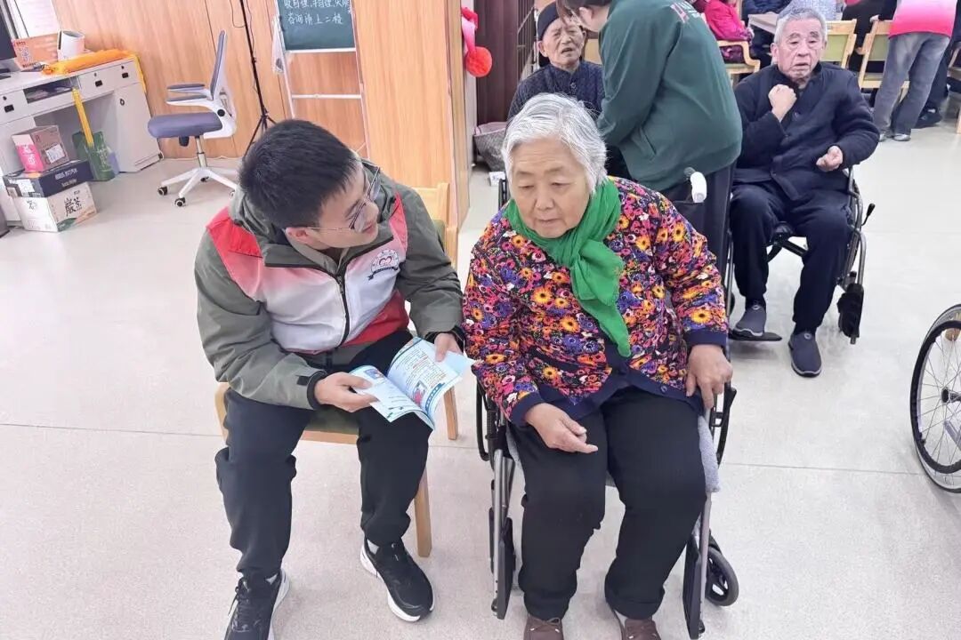 心有暖意,岁月安康;情系桑榆,守护相伴。为守护老年群体的心理健康,学生志愿者发挥专业所长,在养老院活动室里搭建起“心灵驿站”。活动现场,精神卫生专业的研究生们面带笑意,坐在老人身旁,以专业而温和的语气开启交流:“奶奶,最近身体还好吗?睡眠怎么样?”暖心的问候悄然拉近了彼此的距离,老人缓缓道来日常起居的点滴。志愿者始终专注倾听,不时点头回应,并用共情的话语给予专业而温暖的心理支持。